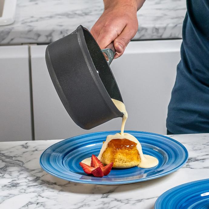 Perfectly cooked results: Designed to withstand high-heat cooking, the heavy-gauge aluminium ensures even heating and no hot spots for consistent results. Perfect for cooking everything from homemade sauces and soups, pasta and risottos to tasty stir fries, pan-fried fish and sautéed vegetables; from crispy bacon, sizzling steaks and golden caramel to perfectly cooked pancakes and poached, scrambled or fried eggs exactly as you like them.