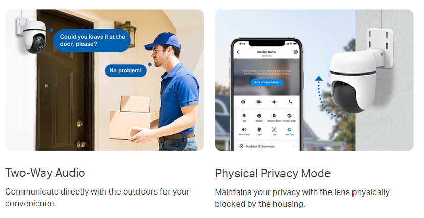 • Local and Cloud Storage: Save all your important moments to a microSD card1 (up to 512GB) or subscribe to Tapo Care2 for cloud service.