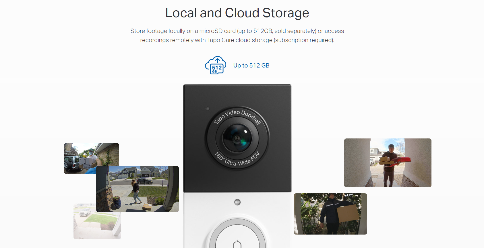 • Local and Cloud Storage: Supports microSD card (up to 512GB) and Tapo Care cloud services.