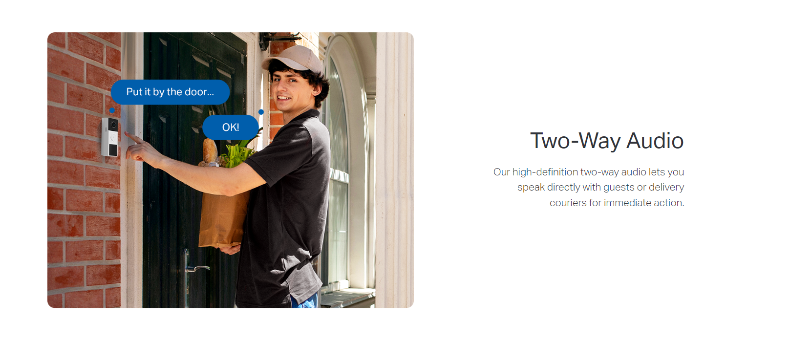 • Two-Way Audio: High-quality talk with premium mic and speakers.