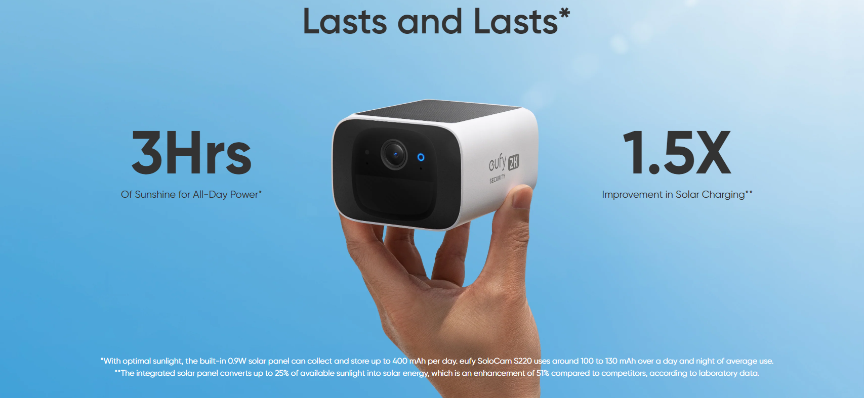 Solar Charging: Keeps the battery full, so you don't have to. 3 hours of sunlight daily keeps it running.