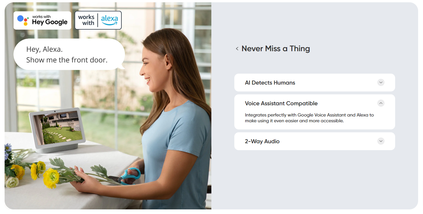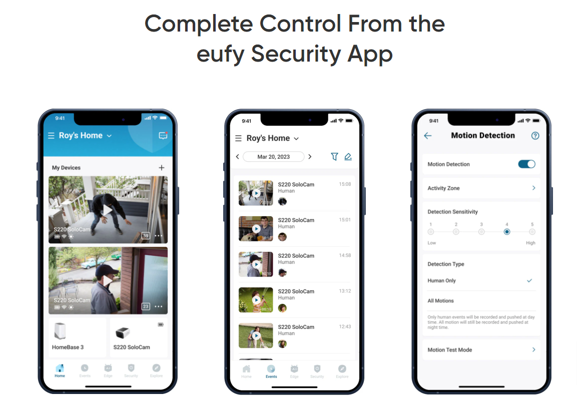 Human Detection: AI alerts you of anyone in your yard, whether family, a courier, or a stranger. Connect to HomeBase 3 for individual facial recognition.