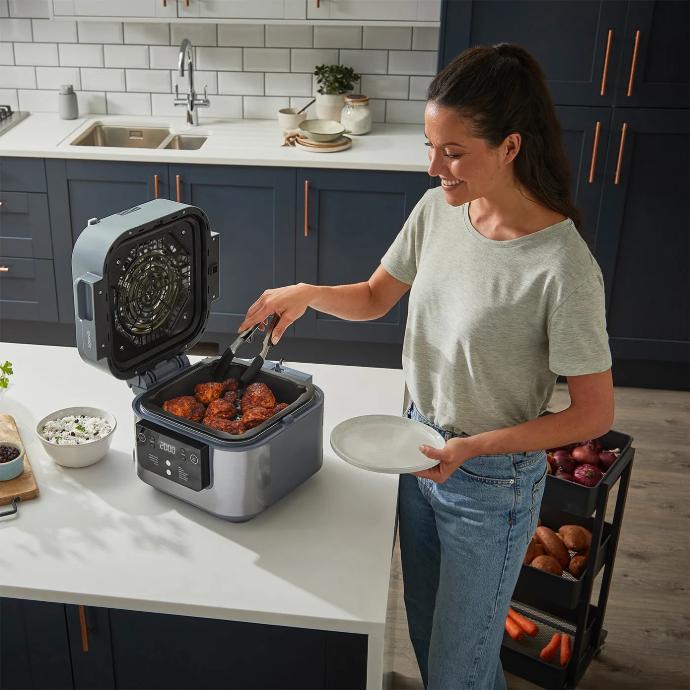 Perfect for cooking up to 4 portions, fast. The 5.7L non-stick, ceramic coated Cooking Pot fits a 2kg roast. Use the Cook & Crisp Tray to layer ingredients in the pot for multi-level cooking, then store inside the pot for fuss-free storage. All the included accessories are dishwasher safe for easy cleaning. You can also use the Steam setting to steam-clean the inside of the lid and unit.