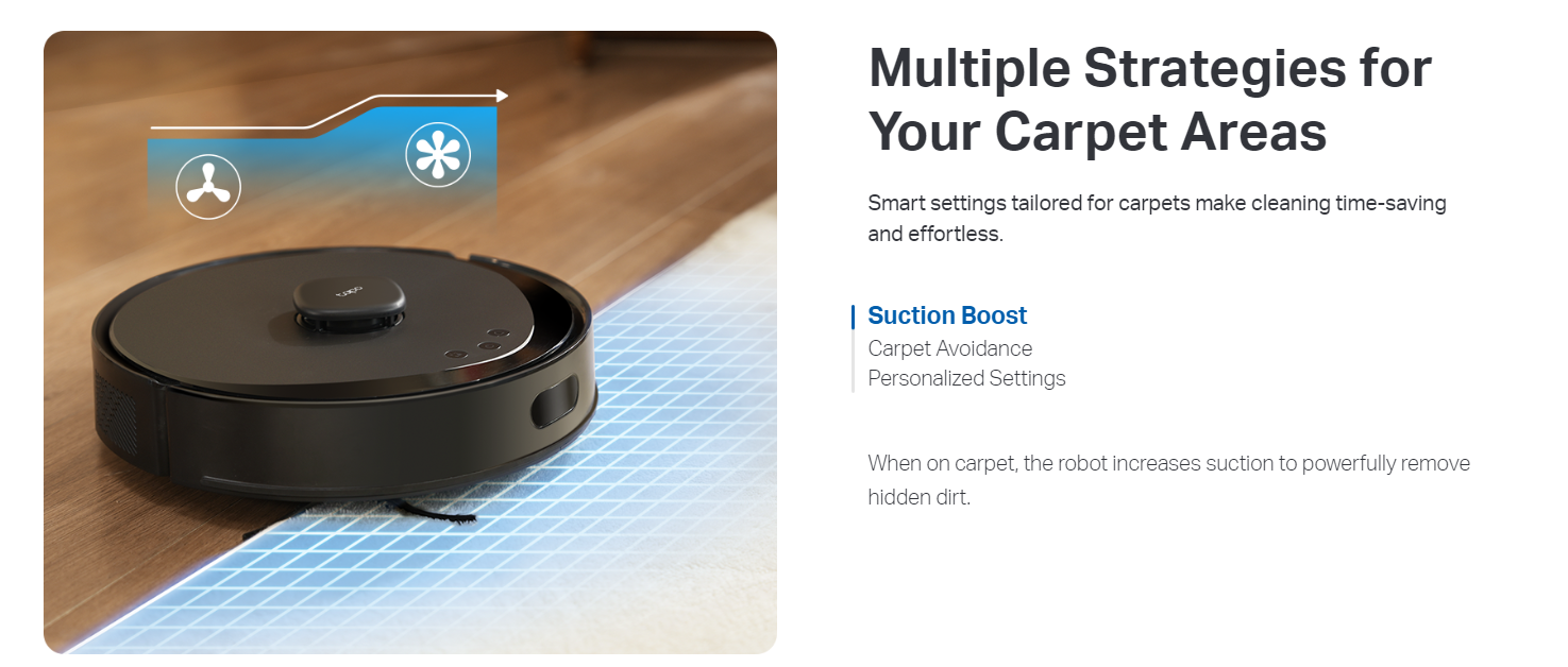 - Carpet Avoidance - Avoid getting carpet areas wet in mopping mode.