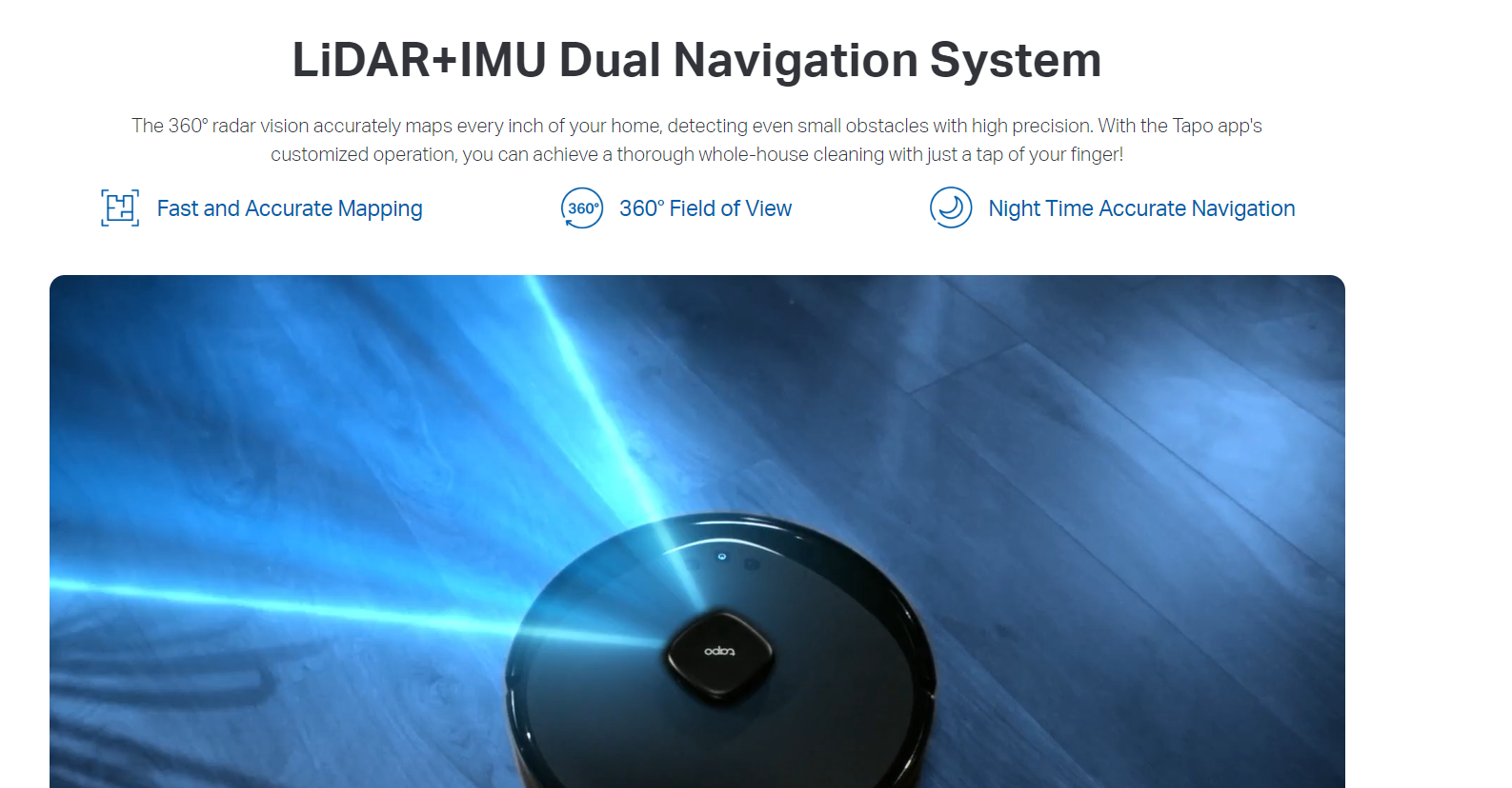 - LiDAR+IMU Dual Navigation System - Accurately maps out your house in minutes, avoids omissions and repeated cleaning, and even works well in the dark.