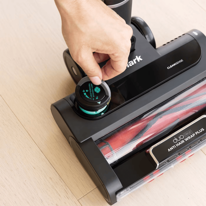 A unique cartridge system guards against dust cup odours commonly caused by hair, dust and dander. Simply insert the Anti-Odour Technology dial into the floorhead and rotate to select an intensity setting.