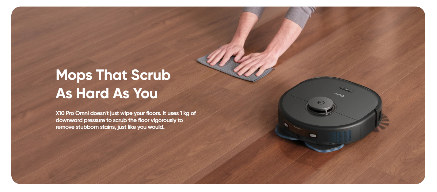 X10 Pro Omni's mop pads are able to clean up to the edges of the room for a sparkling clean throughout the space.