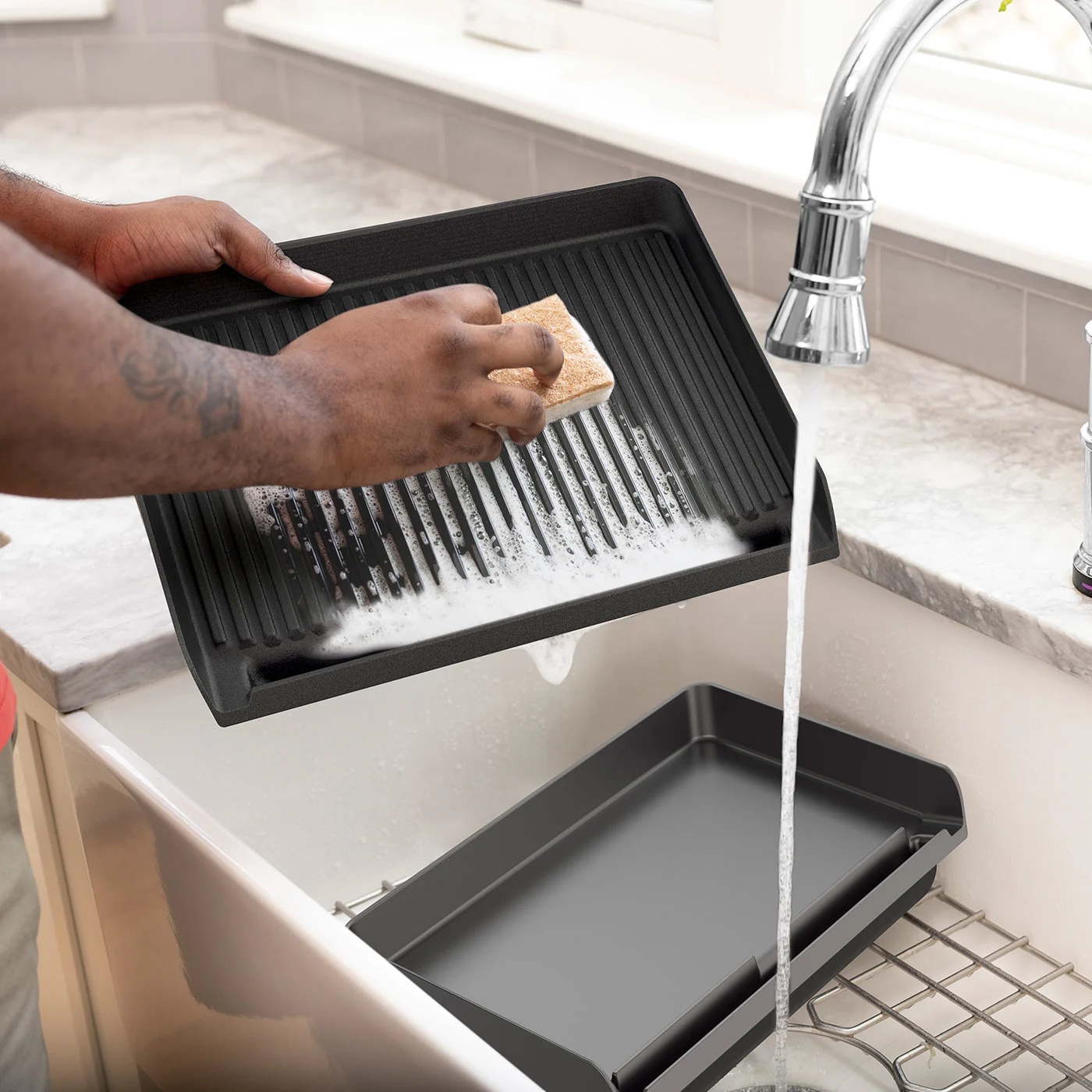 Designed for low smoke, the detachable, dishwasher safe lid reduces smoke from your kitchen and helps to prevent splatter.