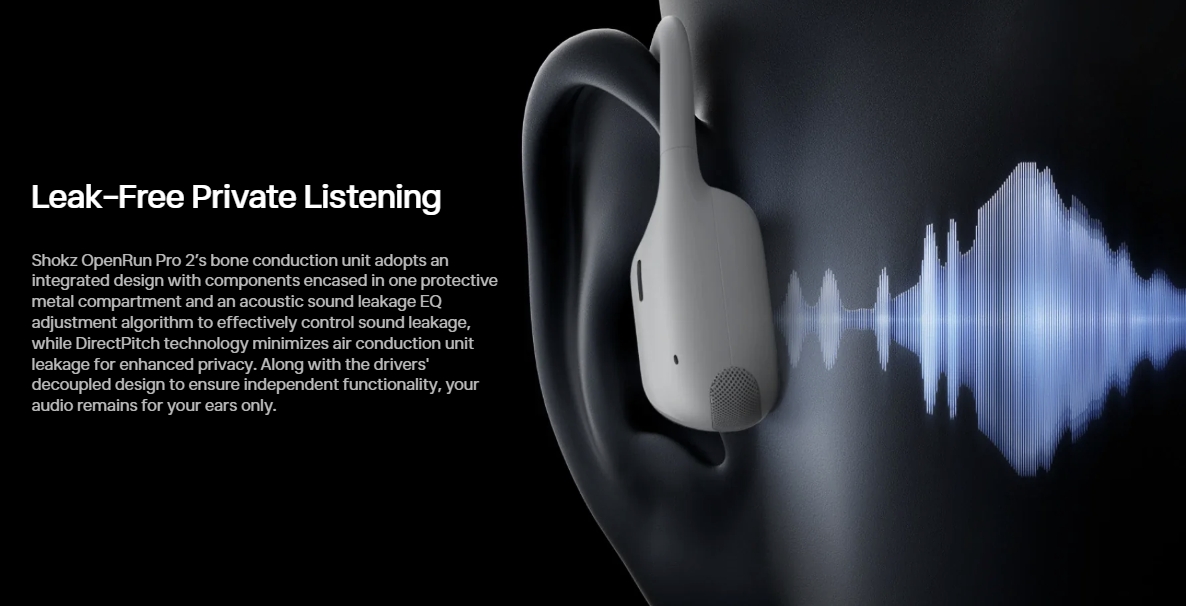 Meet OpenRun Pro 2, the all-new flagship headphone from Shokz that rewrites the rules of open-ear audio, superpowered by Shokz DualPitch. This new technology is about a perfect duet between a bone conduction and air conduction speaker, of which the former handles mids and highs with total precision, while the latter releases controlled, subterranean bass.The result is an unparalleled listening experience that's as clear as it is powerful.