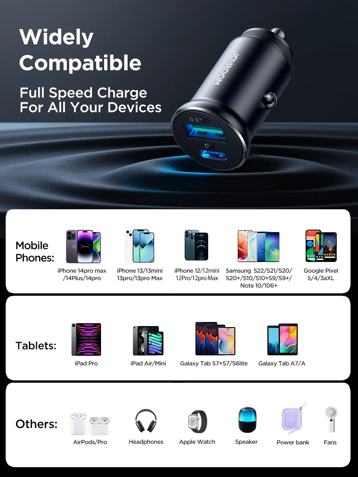 - Wide Device Compatibility-Fast charges various phones and tablets efficiently.